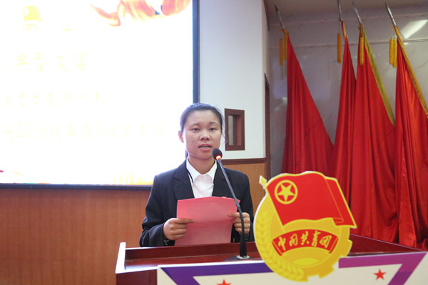 | 图为荣获永利yl“活力团支部”代表、永利yl234112016级英语5班团支部书记伍俏丽同学发言 孙立青摄 |