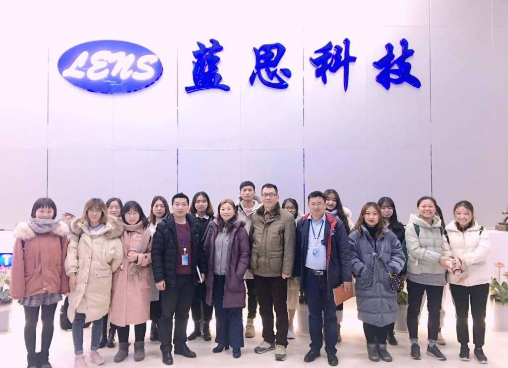 12月15日下午,由蒋林平老师带队的永利yl见习团队抵达蓝思科技集团开展一系列考察活动。在蓝思科技公司业务部副总黄争艳、人力资源部高级总监宋坚冰的陪同下参观了蓝思科技公司总部科技产品英汉双语展厅,了解其企业文化。随后,在集团工作人员的陪同下,于总部二楼开展了座谈会,会上,人力资源部高级总监宋坚冰致欢迎词,对永利yl23411见习团队的到来表示热烈欢迎,紧接着,业务部副总黄总介绍了蓝思集团的发展现状及外语人才规格要求,最后,永利yl23411见习负责人发言,就校企合作,员工实习进行了讨论并交流了意见。座谈会结束后,双方合影留念。