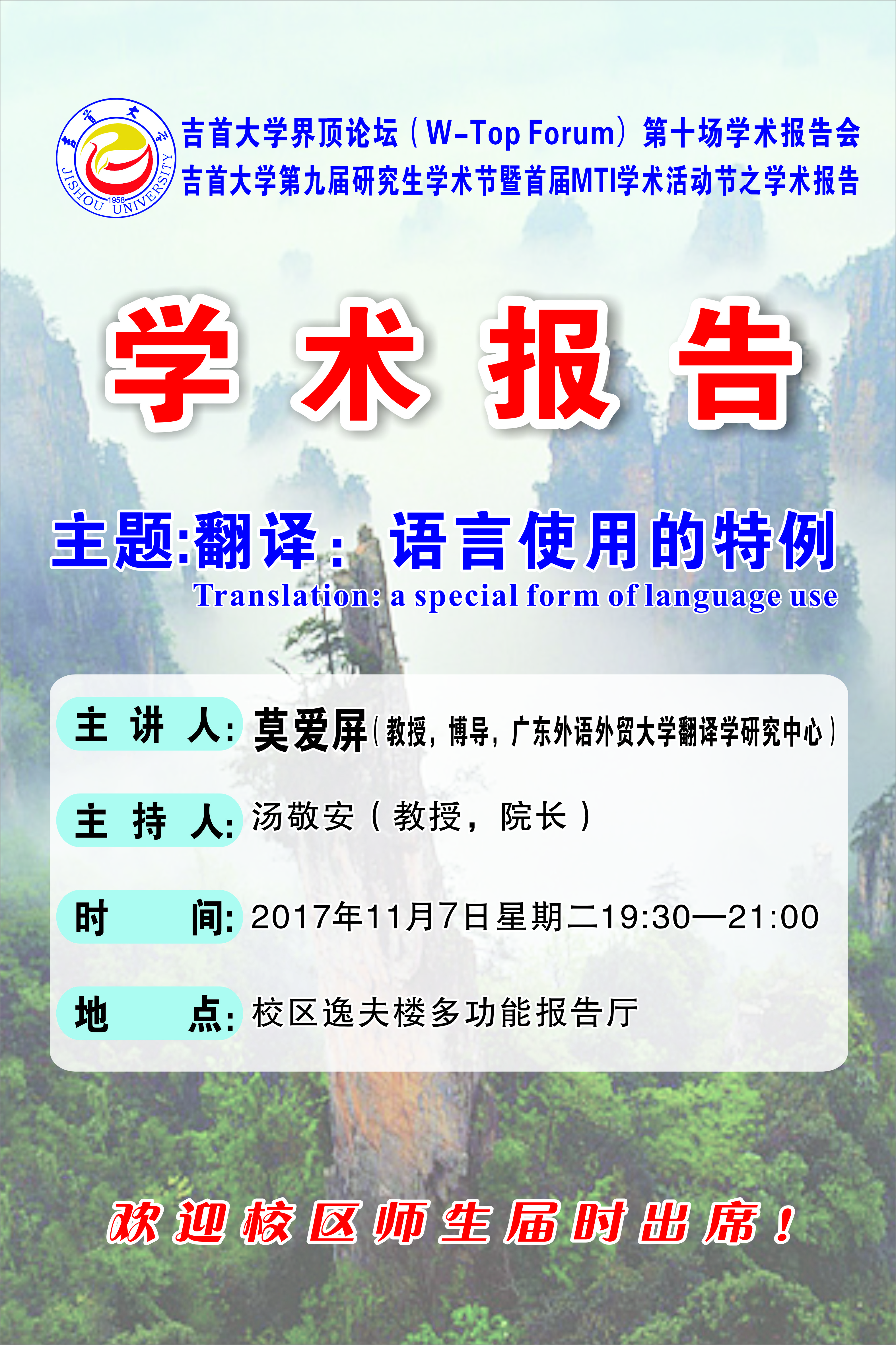 永利yl界顶论坛(W-Top Forum)第十场学术报告会