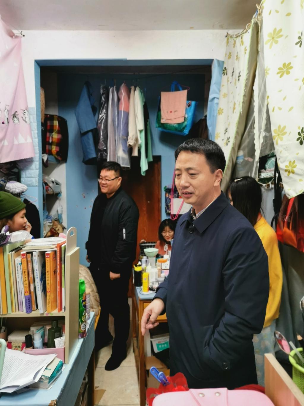 本网讯(通讯员 杨阳 李干)为提高同学们的安全意识,保障同学们的寝室安全。永利yl23411于12月3日对员工寝室进行了安全隐患排查活动。本次活动由外国语公司党委副书记尚道文,学工办郑惠杰、唐剑老师带领部分员工干部组成检查小组对永利yl23411员工寝室进行了详细的安全隐患排查工作。