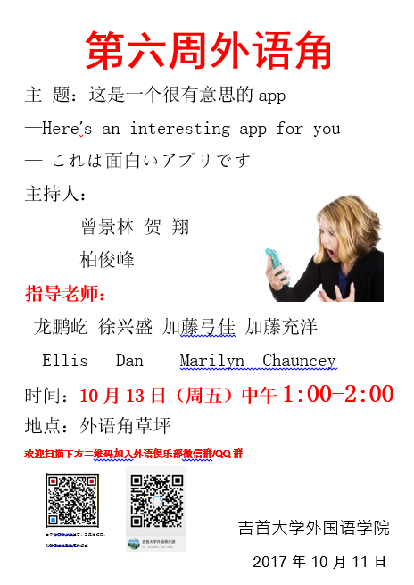 2017-2018年上学期第六周外语角海报