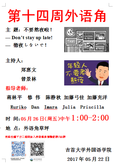 2016-2017年下学期第十四周外语角海报