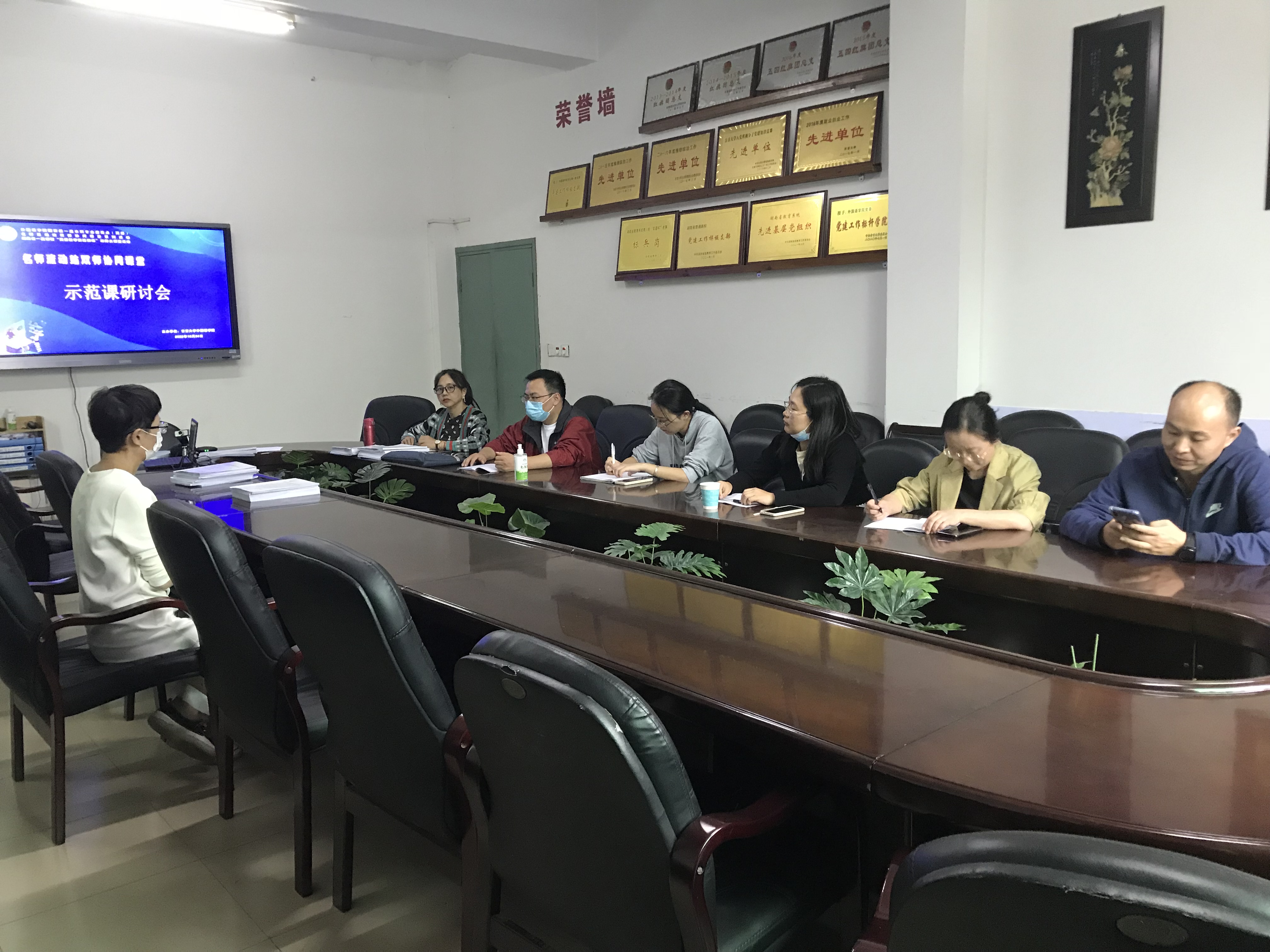 图为示范课研讨会现场