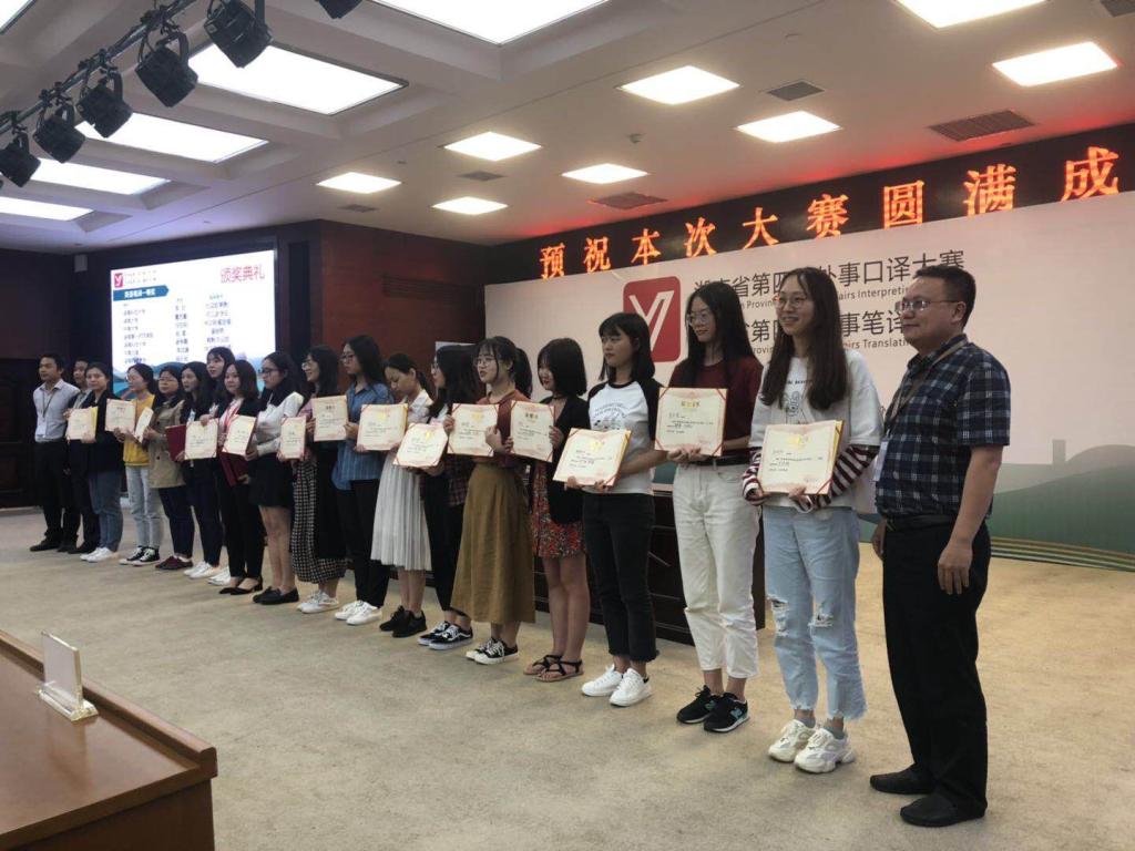 本网讯(通讯员 吴雅格 龙佳佳 潘贵民)5月11日,由中共湖南省委外事工作委员会办公室主办的湖南省第四届外事翻译大赛在中南林业科技大学举行,永利yl23411学子在滕建姣、潘贵民老师的精心指导下与省内985高校、211高校和湖南省各大外事机构的从业人员同台竞技、表现优异,12名选手获奖,其中获特等奖1项、一等奖5项、二等奖5项、三等奖1项,实现了获奖人数和获奖等级的新高。