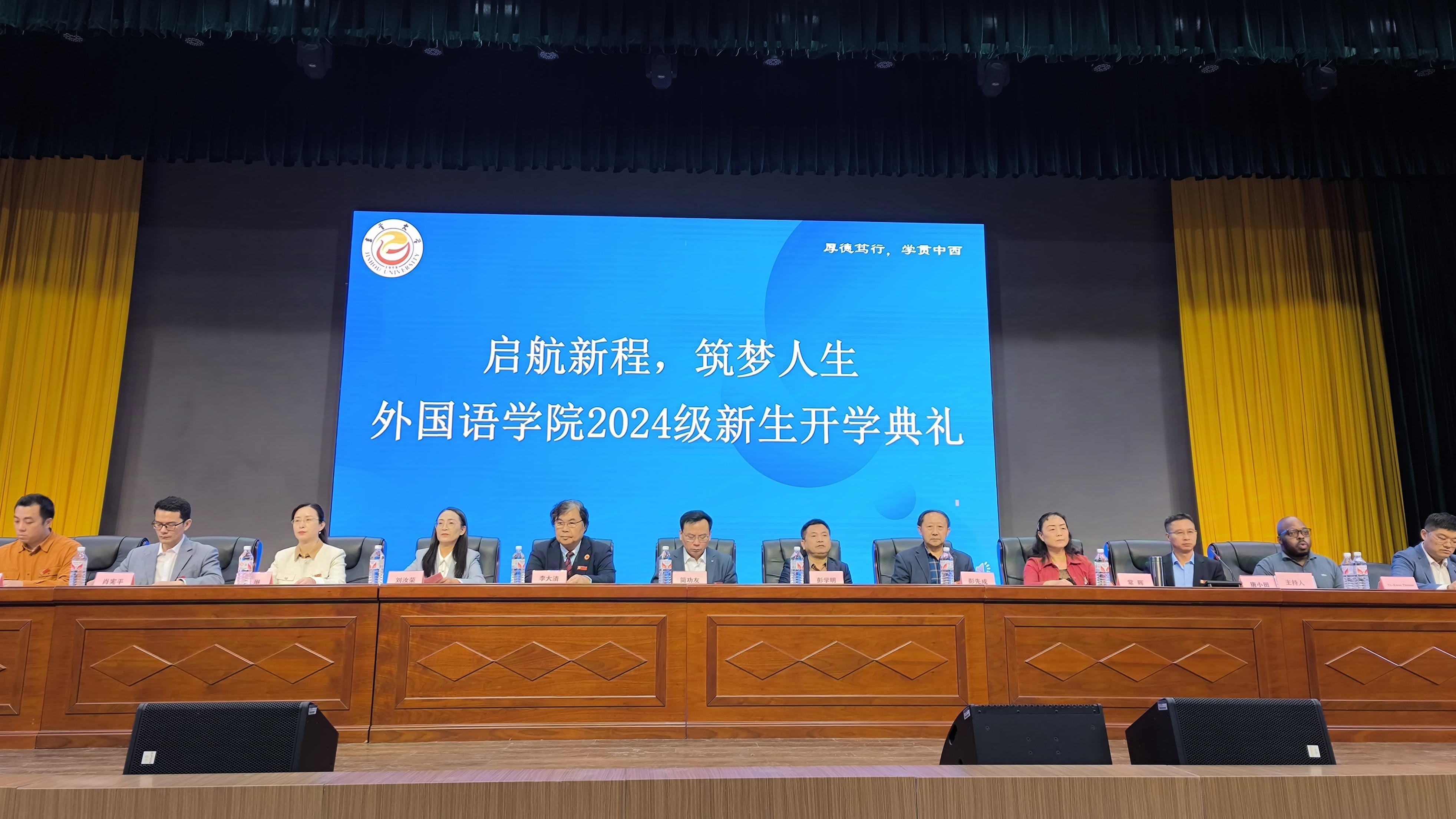 大会伊始,全体起立,奏唱国歌。在校生代表2021级英语(师范)专业张瑞芳首先发言,她分享了自己大学学习和生活经历,鼓励新生们积极融入老员工活,勇于探索和挑战自我。紧接着,本科新生代表2024级商务英语专业贺娜和研究生新生代表24级翻译硕士李金洋分别发言,他们表达了对未来学习和生活的期待与憧憬。教师代表刘锋博士在发言中强调了公司的教育理念和学术追求,鼓励新生们在学术探索中不断进步。外教代表Tu-Kwon Thomas老师通过研究生张婷宇同学的交替传译,向新生们传达了外语学习和具备国际视野的重要性和跨文化交流的价值。