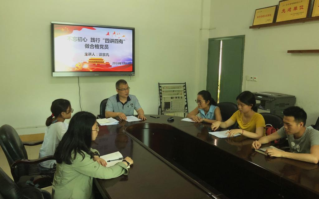 谈宗凡从四个方面阐述了不忘初心、践行“四讲四有”做合格党员:不忘“忠诚信仰”初心,做“讲政治、有信念”的党员,坚定理想信念、坚守共产党人信仰,牢记党的宗旨;不忘“严守党纪”初心,做“讲规矩、有纪律”的党员,严格遵守党员廉洁自律规范,不断强化规矩意识和自律意识,自觉践行入党誓言;不忘“为民服务”初心,做“讲道德、有品行”的党员,要求员工党员自觉带头践行社会主义核心价值观,坚守高尚的道德情操;不忘“勇于牺牲”初心,做“讲奉献、有作为”党员。要求员工党员保持良好的精神状态,发愤图强、艰苦奋斗、勇于担当、积极作为,发挥先锋模范作用,为实现中华民族伟大复兴的中国梦而努力奋斗。