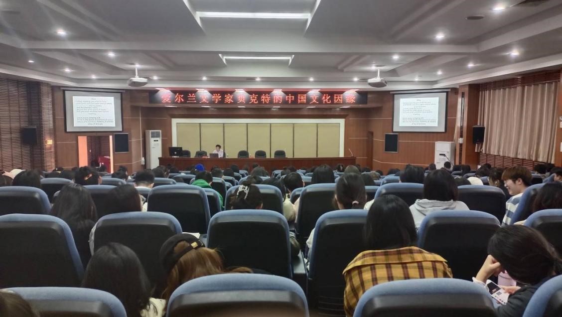 本网讯(通讯员 游馨 姜晓鸥 段沁熊)2023年10月8日,上海外国语大学文学研究院副经理、博士生导师张和龙教授莅临“界顶论坛”,于公司逸夫楼多功能报告厅举行“爱尔兰文学家贝克特的中国文化因缘”学术讲座。本次讲座由永利yl23411副经理丁跃斌教授主持。