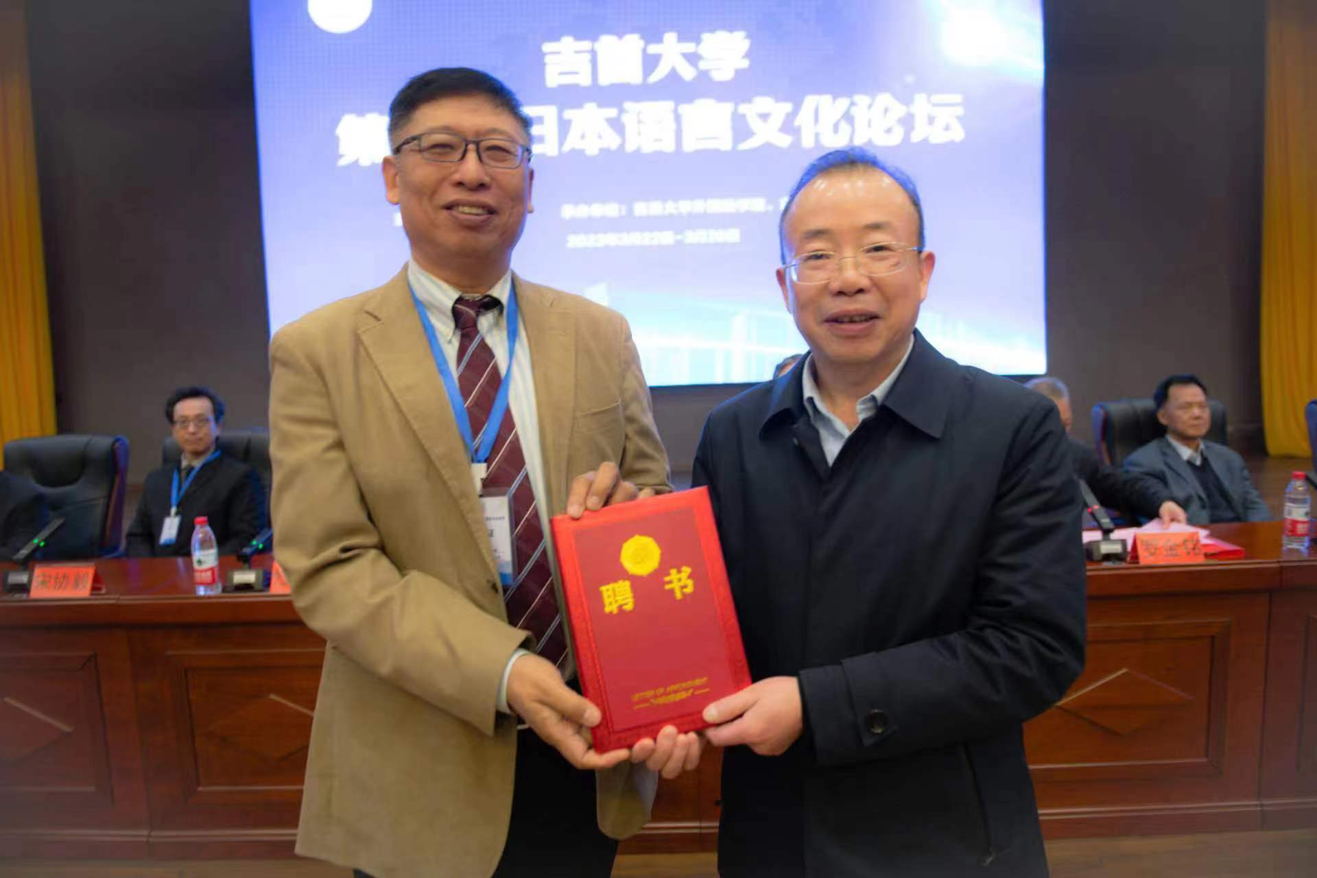 论坛结束前还举行了赠书仪式,中国人民大学张威教授还代表《日本学研究丛书》编委会为公司赠送《日本学研究丛书》已经出版的图书,北京外国语大学徐一平教授赠送其新出版的学术著作《现代中国日语教育史》,北京大学滕军教授赠送了一套教学光盘。《日本学研究丛书》由外语教学与研究出版社出版,荟集国内外日本学研究的精粹,目前已经出版《日本近现代文学研究》《中日比较文学研究》《日语语法研究(上下)》《日语语用学研究》《日语教学研究》6卷。该系列丛书以其权威性、系统性、前沿性备受学界关注,丛书付梓发售之际,公司成为国内获齐书卷的首家高校。获赠的学术著作必将对公司日本学研究提供强有力支持。