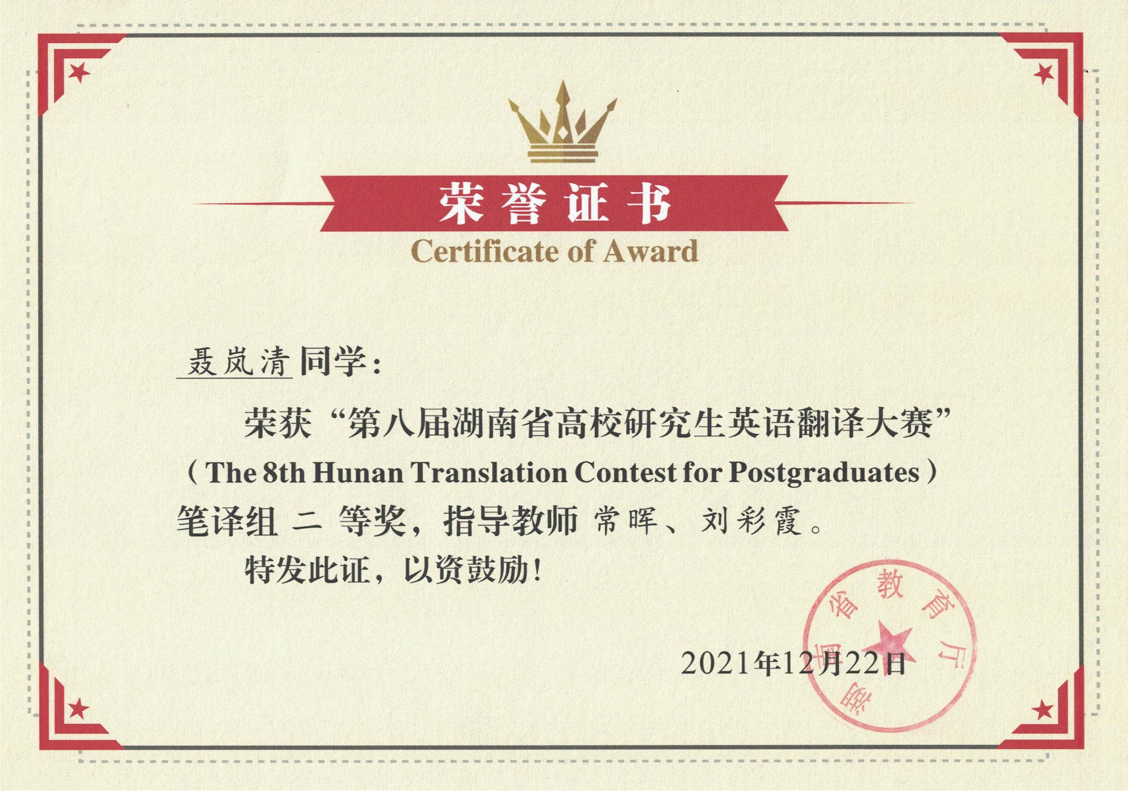 永利yl翻译硕士专业学位点是2016年经湖南省学位办批准设立的专业学位,2020年顺利通过国务院学位委员会组织的专项评估。由三个本科专业(翻译、英语、商务英语)直接支撑、四个一级学科(外国语言文学、中国语言文学、民族学、工商管理)协同推进,致力于培养高层次、应用型、专业化和本土化的翻译人才,以旅游翻译和民族文化外译人才培养为特色,共设英汉口译、英汉笔译两个专业方向。日常管理由永利ylMTI教育中心负责。公司与西悉尼大学签署《翻译专业联合培养》协议,选拔进入联合培养项目的员工毕业时可同时获得两校的硕士学位。